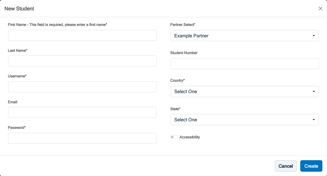 There are two ways to add student accounts through the administrator panel: importing them from a file and creating them manually.